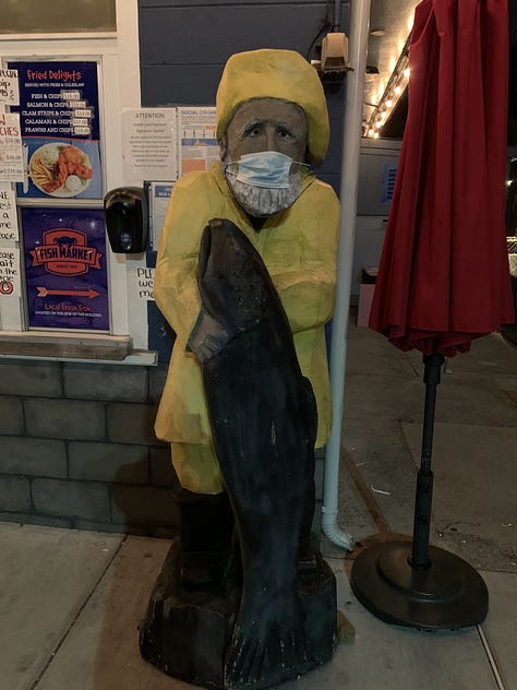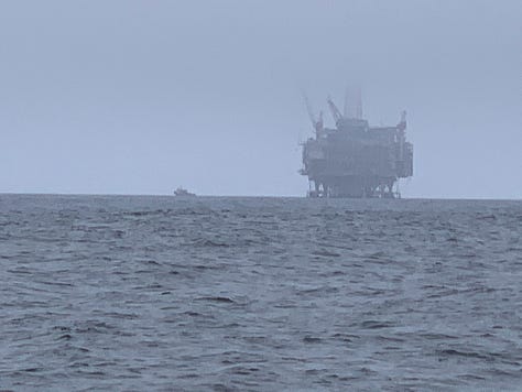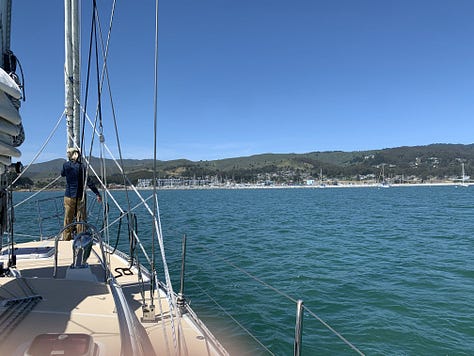 After 3 days of sailing from Long Beach, CA, we stopped in Half Moon Bay, just 20 miles south of the San Francisco Bay entrance. We had to duck in, as the calmer weather brought by the low-pressure system was going away. Another strong high was coming in and shutting down our ability to move north. Half Moon Bay is a fishing marina. It has a nice vibe and is very different from the experience of posh places around LA. We stayed there for two days and witnessed the entire fleet leaving and returning on the same day, with a good catch. We were treated to 2 crabs and a chunk of halibut from the boat next to us. It was a feast.
