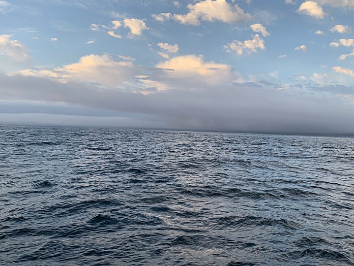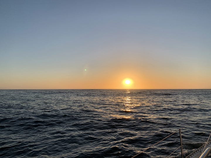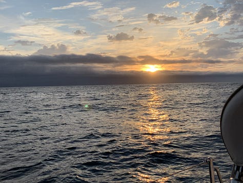 This was one of the many "firsts" on this trip. Many others followed. First seeing pods of dolphins and pods of humpbacks. First overnight watch and overnight sailing. First time leaving the port at night (that came later). Continuous learning. It brought a lot of excitement of trying out new things and realizing that it is all doable, with the right preparation and precautions. One quick learning was that sailing offshore is actually much calmer than coastal cruising. You set the course, set the sails, and go for several hours. There is no need to adjust things unless the conditions change. This made standing night watches much easier than I expected. Also, it turned out that on a clear night, it is quite bright once your eyes get adjusted. Overall, standing a watch, especially at night, can be a calming experience.
