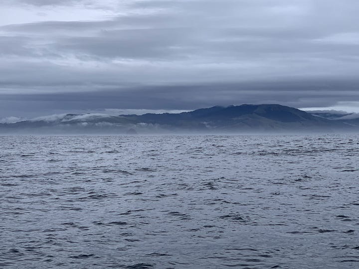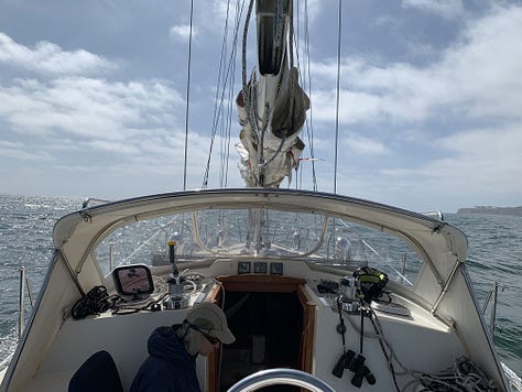 The start was a bit rough. We were departing at the tail end of a strong high-pressure system that had been pushing wind and waves from the north. It was supposed to be calming down, giving us a window to hop around Point Conception and get closer to San Francisco. The first lesson was that the reality of the weather does not always follow the precise-to-the-hour predictions seen on PredictWind models. The sea state was still quite rough, with swell pushing from the north, and a changed south wind working against it. The result was somewhat reminiscent of a washing machine. I learned that I am indeed susceptible to seasickness, the first time in my sailing experience. After subjecting myself to 6 hours of this roller coaster, I finally succumbed to Neptune's will. But things got better after that, and on the second day and afterward, I felt great.