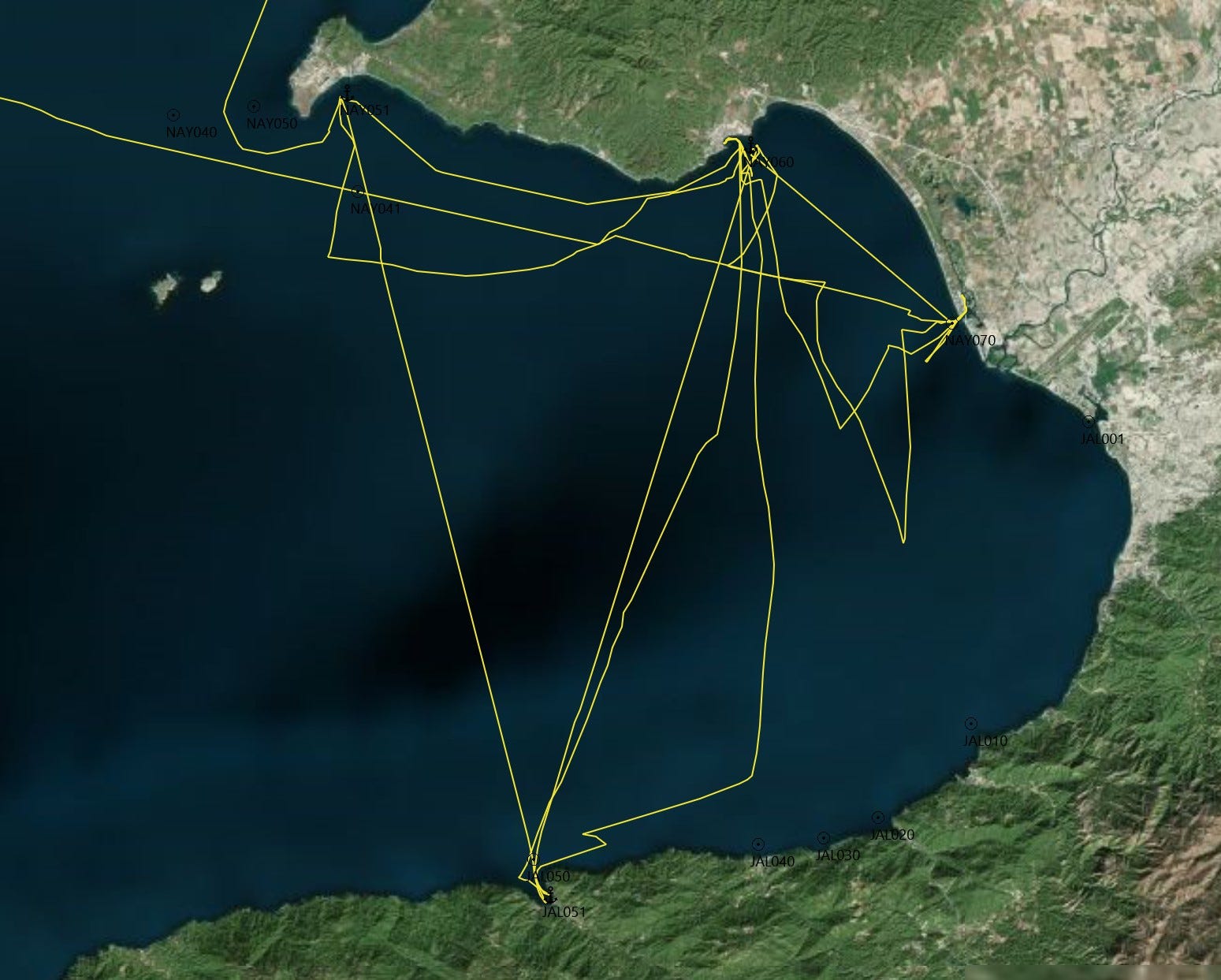 The bay is very deep, making it challenging to find a suitable anchoring spot. Locals have set up multiple mooring buoys in the bay to attract boaters. When you approach Yelapa by boat, you are greeted by pangas representing local restaurants that also happen to own mooring buoys. They try to entice you to pick their mooring. We had a recommendation from our friends to look for Tito, but his boat was not the one that greeted us. Instead, it was Ricardo. He found us over a mile away from the bay entrance. He was clearly motivated to find a customer. We did not feel like we should start a bidding war between the locals, so we went with Ricardo. He promised a brand-new buoy and a double bow and stern hookup. That would keep us into the swell and reduce the rolling at night, which is a problem in Yelapa. The buoy turned out to be indeed brand new, and we picked it up, although with some challenges due to confusion on who should be doing what - us vs. Ricardo. This is not Catalina Island, where you can watch an instructional video before picking up a buoy. The mooring was close to the shore, and the stern line looked somewhat flimsy. Ricardo assured us it is well secured. We backed up on the buoy, and it held, so we decided to stay, especially since the forecast was for light winds.