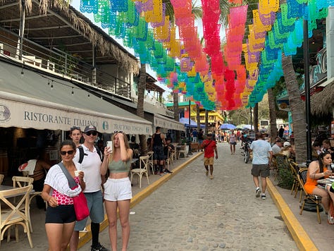 Paradise Village is one of the two places where cruisers gather in Banderas Bay. So, we naturally ran into some of our long-lost friends, and they introduced us to others, and overall, our social life flourished there. It was fun gathering for drinks, dinners, or visiting each other’s boats.