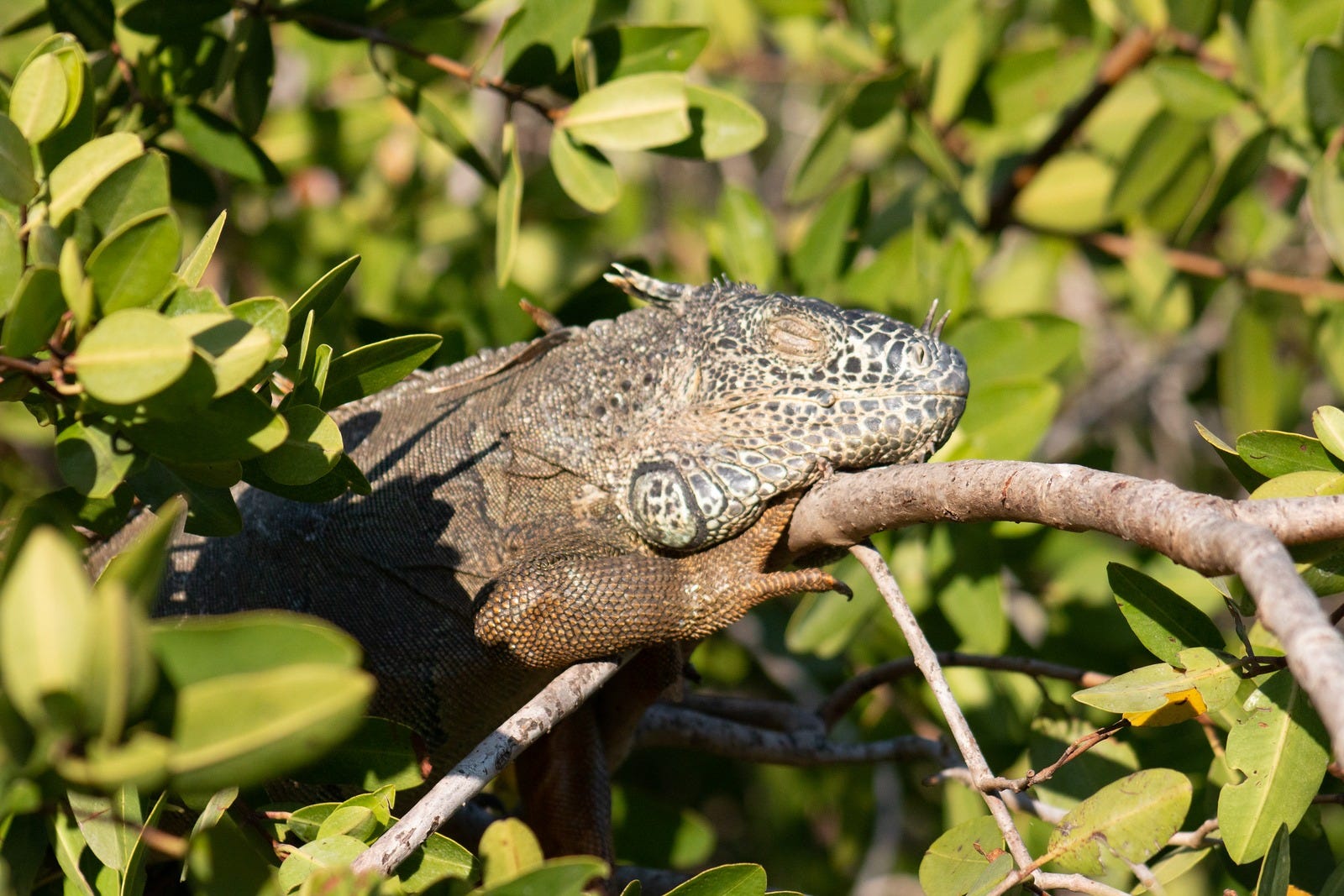 One of our first trips was on a dinghy up the river. The marina is situated on an estuary – a small river that empties into the ocean. The river is surrounded by a mangrove forest and is populated by crocodiles. We did not find any of them, but we did see lots of iguanas. They sit in the trees and just bask in the sun. There are so many of them that we lost count.